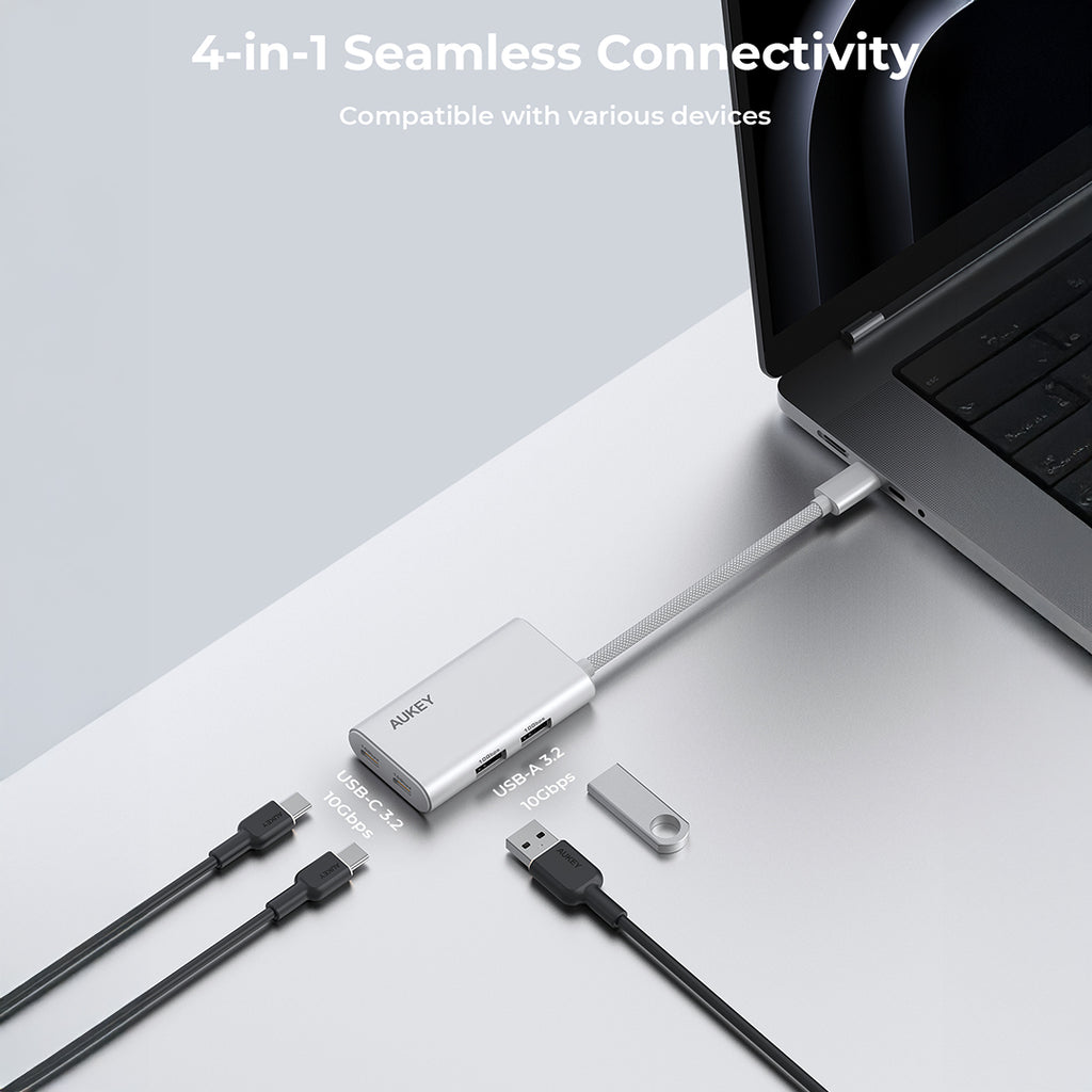 10Gbps Data Transfer: Equipped with 2 USB-C and 2 USB-A ports, delivering ultra-fast data transfer speeds of up to 10Gbps for multiple devices simultaneously. Ideal for quickly transferring large photos, videos, and files with maximum efficiency.